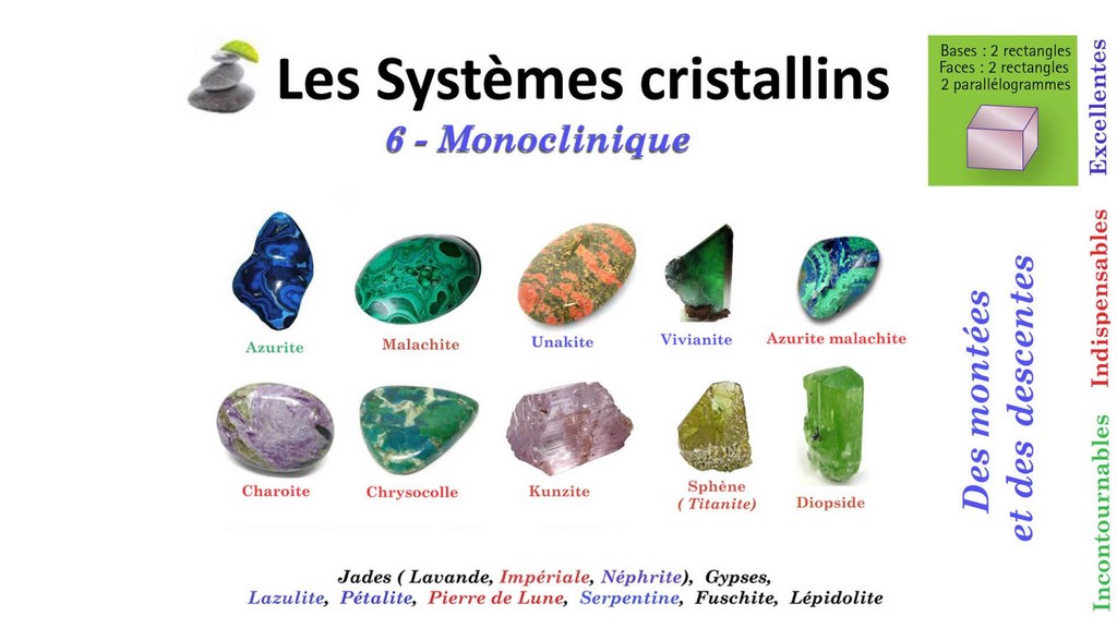 Apprendre à les reconnaître est parfois un peu compliqué; entre les angles alpha, beta, c'est tout une science que ce bel exposé du Dr Alain Boudet vous invite à découvrir. Pour profier des bienfaits des minéraux, vous n'avez pas besoin de ce niveau de maitrise du sujet. Je vous ai préparé des planches pour vous aider à selectionner vos pierres parmi les principales utilisées dans chacun des systèmes cristallins. Par exemple les Rubis et saphir partagent le même programme de croissance; étant tous deux de la famille des Corindons, ils ont « poussé » presque de la même manière. Ce qui les différencie, c’est ce qu’ils ont rencontré pendant leur croissance. Le rubis a fraternisé pendant sa jeunesse avec des atomes de Chrome, tandis que le saphir, lui, ne les a jamais connus.